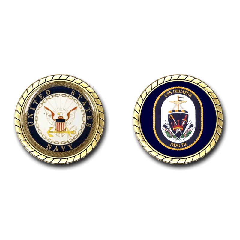 Beautiful US Navy Challenge Coin with US Navy Emblem on one side and the Destroyer's Crest on the other side.
