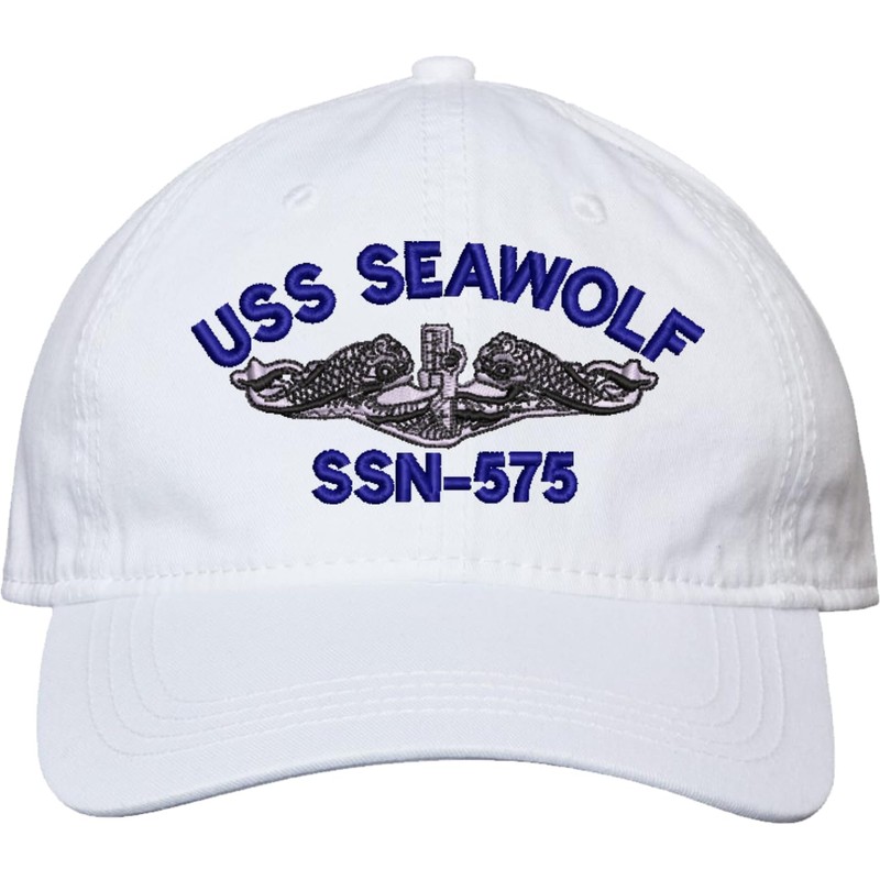 USS Seawolf SSN-575 with Silver Dolphins Unstructured Dad Cap (White)