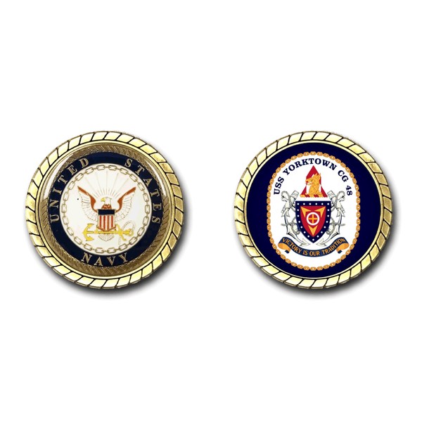 - Beautiful US Navy Challenge Coin with US Navy Emblem on one side and the Cruiser's Crest on the other side.