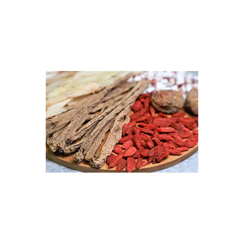 (Herbal Codonopsis Energy Boost Soup Mix)Main Ingredients:- (Chinese Yam)35g- (Polygonatum Odoratum)30g- (Codonopsis)30g- (Fox nut)25g- (Goji Berries)20g- (Honey Dates)30gDirections:Step 1: Wash all ingredients. Optional: Blanch and add pork rib or chicken (not included).Step 2: With all the ingredients in a stockpot, (add 4-5 slices of ginger, not included), add 1.5 liters of water and boil on high heat.Step 3: Switch to medium to low heat and simmer for about 1 hour.Step 4: Add 1 tablespoon of rice wine on high heat for 3-5 minutes, season with salt.Net Weight: 6oz (170g)