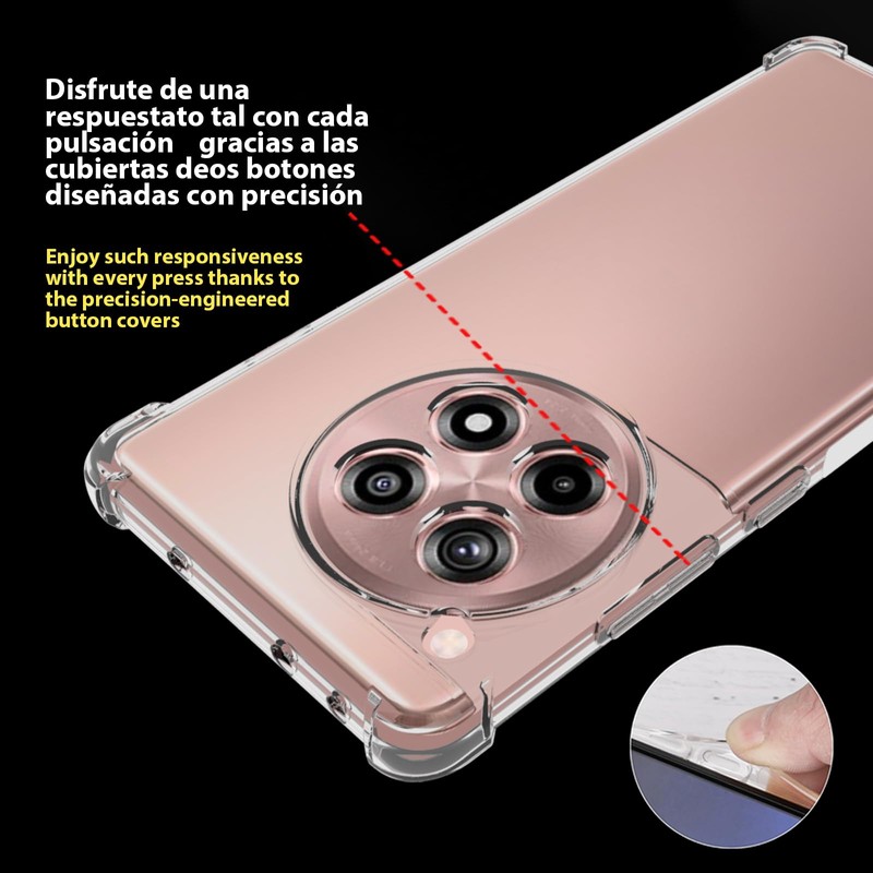 - Its design with micro dots on the inside prevents the wet and sticky appearance, so common among transparent cases, thus helping to maintain the beautiful design of your OnePlus 12R / 1+ Ace 3