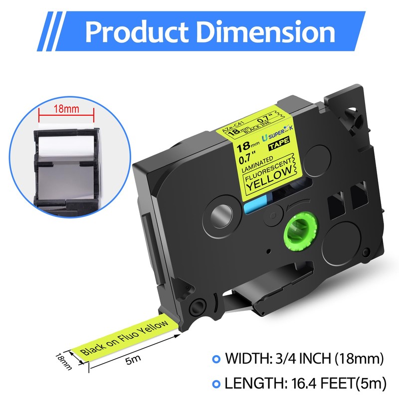 - USUPERINK Alternative Compatible Label Tapes Replacement for Brother Ptouch Label Refill TZe-C41 TZeC41 TZ-C41 TZC41 AZe-C41 18mm 0.7 inch 3/4'' Standard Laminated Label Maker Tapes.