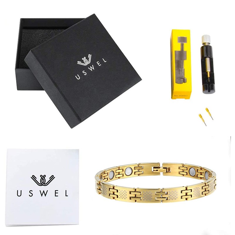 USWEL Strength Titanium Magnetic Therapy Bracelet for Women and Men 18K Gold Plating