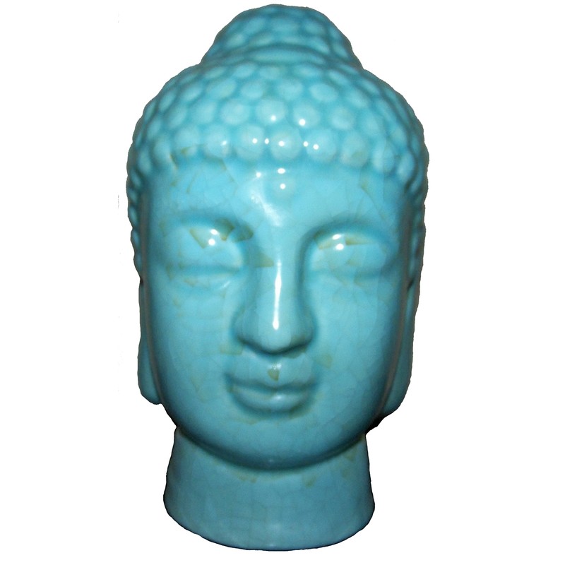 UTC Ceramic Buddha Head Rounded Ushnisha Turquoise Blue Crackle 6.3" H