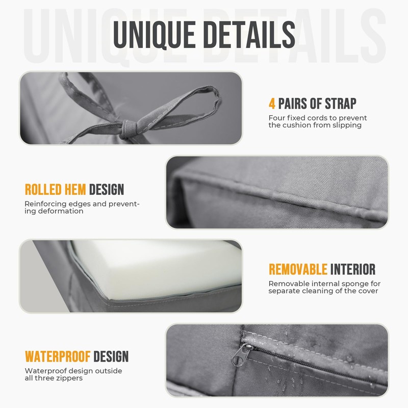 - Advanced Waterproof Protect: We use waterproof oxford cloth material, In addition, we also use hidden zippers to prevent water from seeping through the zip seams, Multiple waterproof materials and designs help us to prevent the waterproof chaise lounge cushions from getting wet