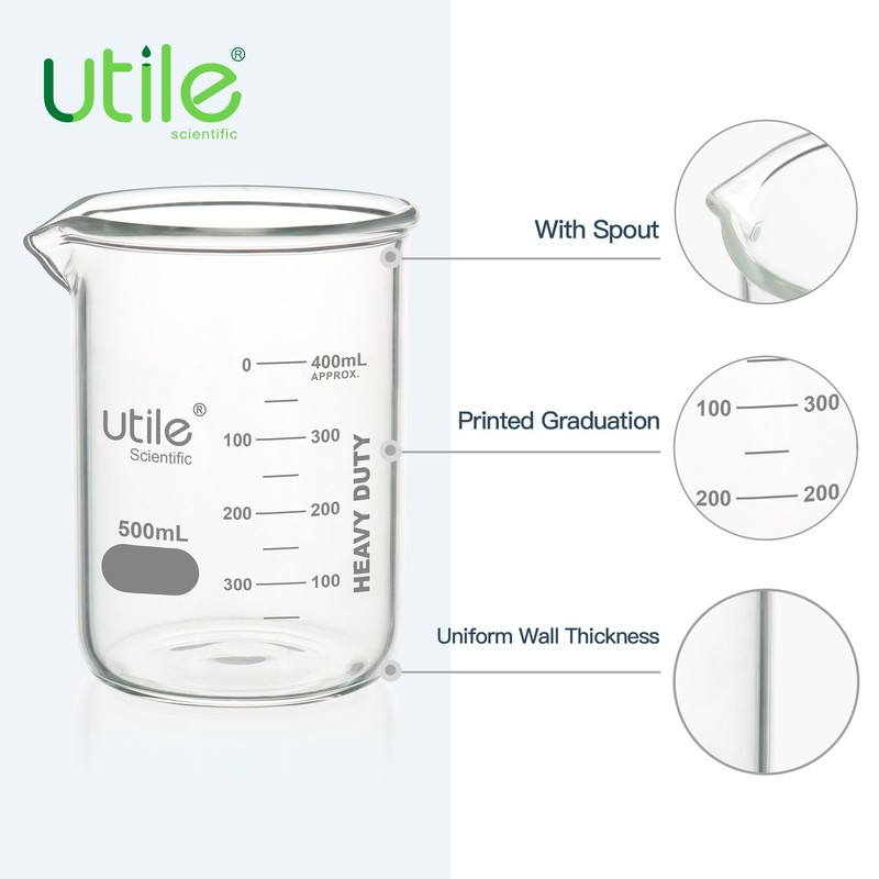 Utile 6 Pcs 500ml Glass Beaker Set, Chemical Glass Beakers, Low Form Borosilicate 3.3 Glass Lab Beaker with Printed Graduation, 4000.0500.6
