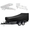 - Our trailer cover is made of high-quality Oxford polyester fabric, which is durable, strong and thick. It is weatherproof, waterproof, UV-resistant and tear-resistant, protecting your trailer from damage by sunlight, rain, dust, leaves, etc.