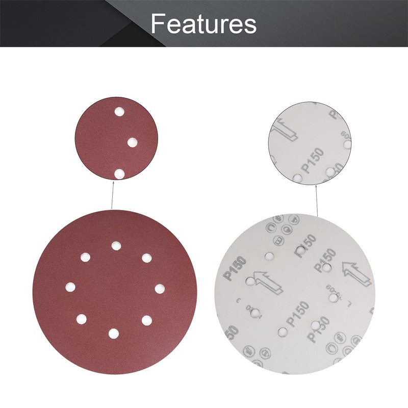 - 【Product Detail】150 grit 7 inch (180mm) hook and loop sanding discs. Pre-punch with 8 holes for dust extraction. Resin over resin bonded grains efficiently deliver fast, smooth effect.