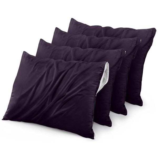 Utopia Bedding 4 Pack Waterproof Pillow Protectors with Zipper Standard Size (Purple), Bed Bug and Dust Mite Proof Pillow case Covers, Moisture Wicking Pillow Encasements 20 x 26 Inches