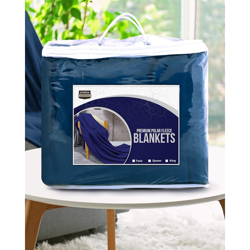 Utopia Bedding Fleece Blanket King Size Navy Soft Warm Bed Blanket Plush Blan...