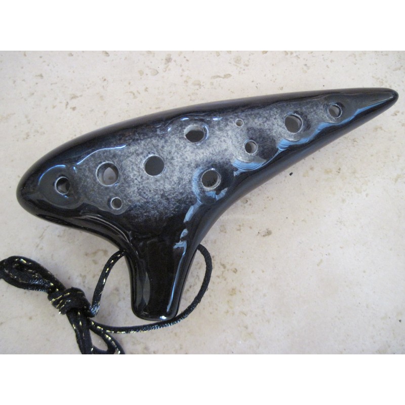 Utopia Ceramic Ocarina Diamond Black & White in the middle on top side w. Crackles Soprano G Key High temperature Kiln Treated good Hardness Endurability