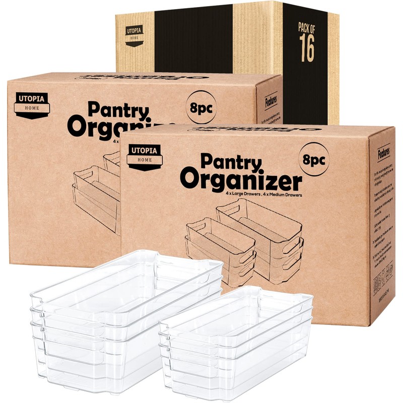 Utopia Home Pantry Organizer - Set of 16 Refrigerator Organizer Bins - Fridge Organizer for Freezers, Kitchen Countertops and Cabinets - BPA Free (Clear)