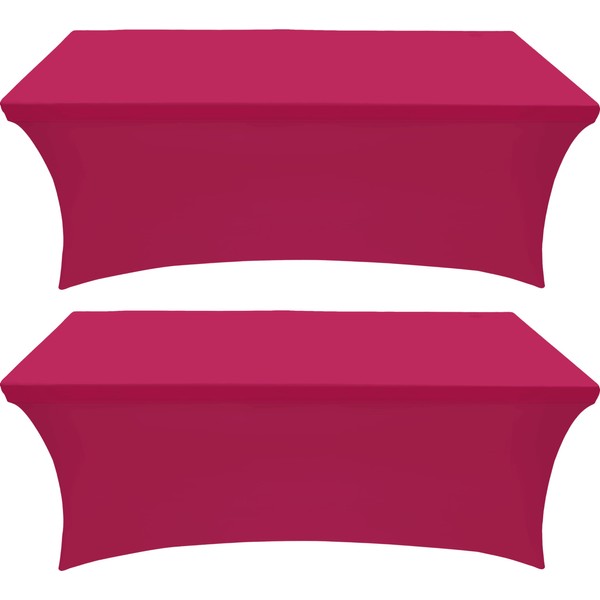 Utopia Kitchen Spandex Tablecloth 2 Pack [6FT, Fuchsia] Tight, Fitted, Washable and Wrinkle Resistant Stretch Rectangular Patio Table Cover for Event, Wedding, Banquet & Parties [72Lx30Wx30H Inch]