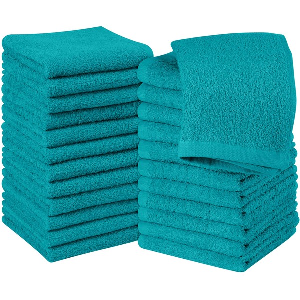 Utopia Towels Cotton Turquoise Washcloths Set - Pack of 24 - 100% Ring Spun Cotton, Premium Quality Flannel Face Cloths, Highly Absorbent and Soft Feel Fingertip Towels