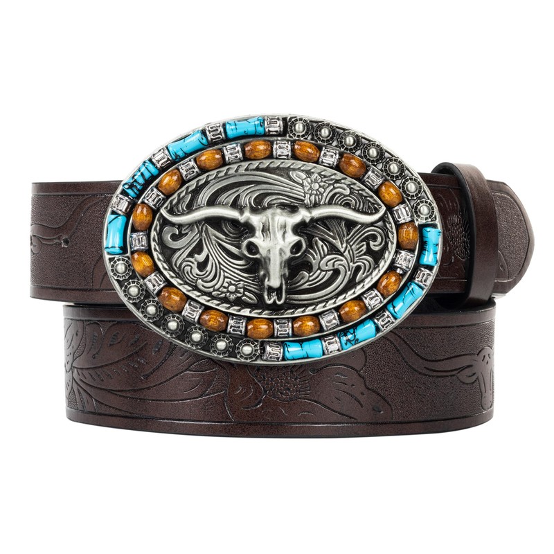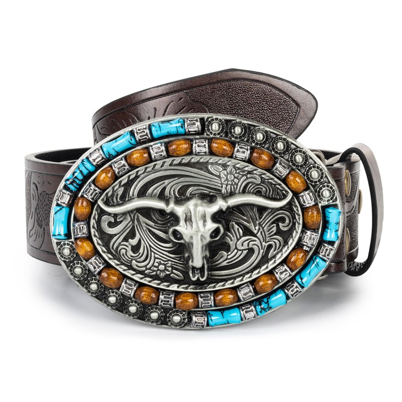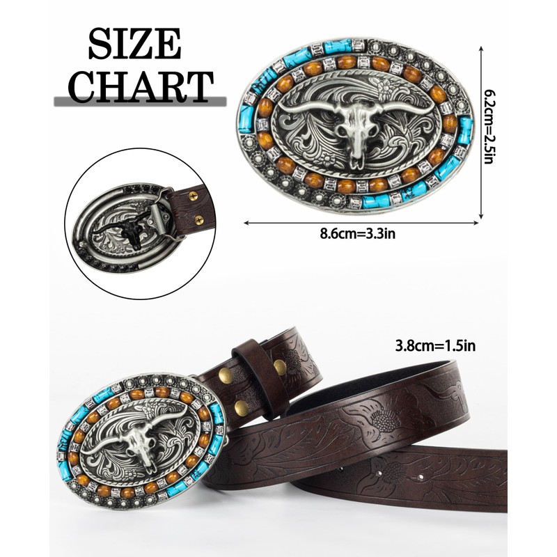 - Durable Materials:Our the brown western country leather belt is made of quality leather,engraved with floral and long horn bull,these rugged belts feature traditional western styling and details,the thick and durable leather will keep your jeans securely in place while you work the ranch or head out for a night on the town. The big belt buckle is made of quality zinc alloy,craftsmanship,not easy fade and break,have a long-lasting life and durability.