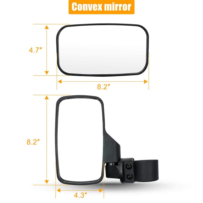 - Made of high quality plastic shell, glass lens and durable ABS clamps, the whole set of mirrors is wear and corrosion resistant, great for all weather conditions