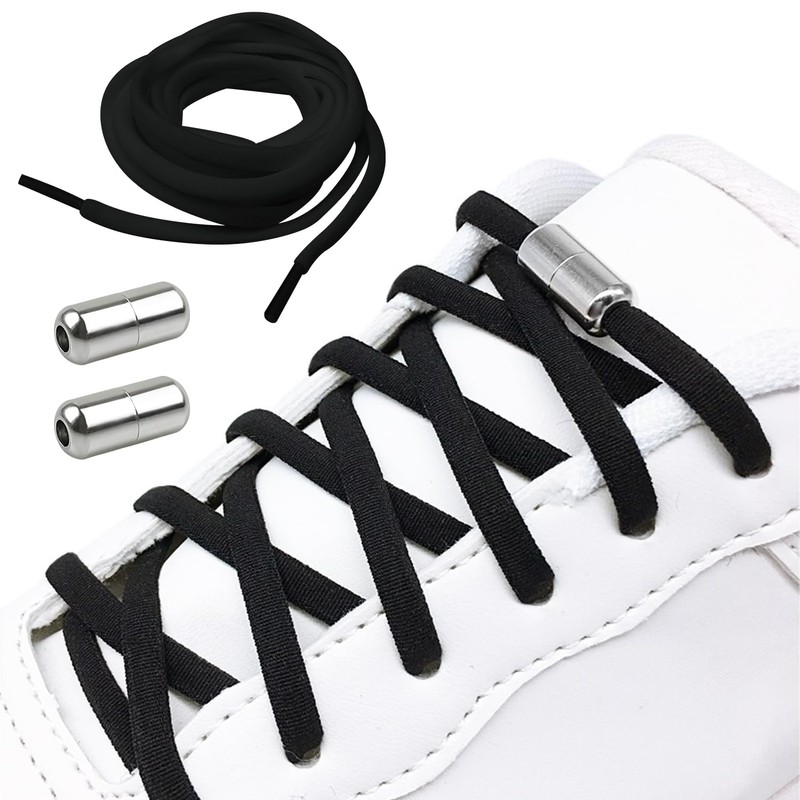 No tie shoe laces with metal buckles,convenient to use,no worry about loosening and re-tying.