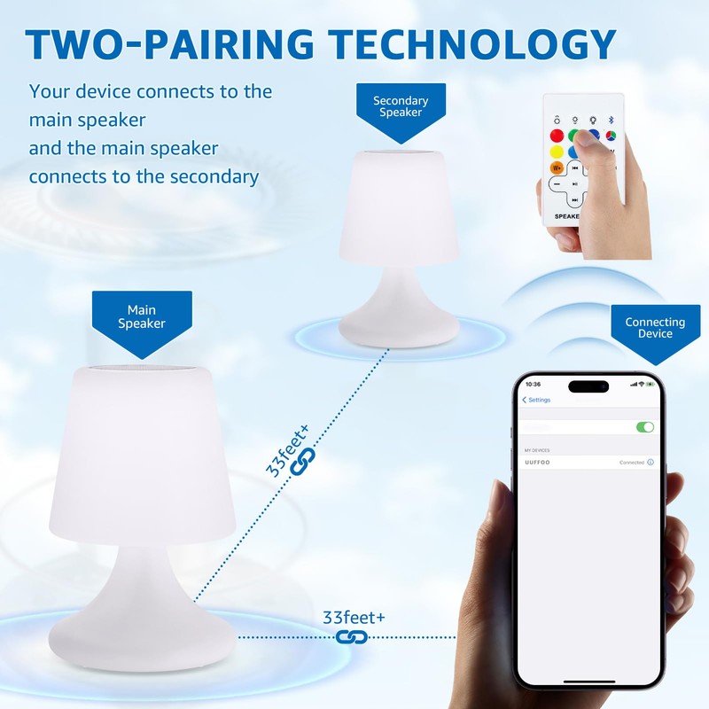 - Table Lamp With Speaker: Speaker and lamp combination allows you to enjoy relaxing moments with beautiful music It will be a must-have decor for Patio Pool Party Balcony and Bathroom