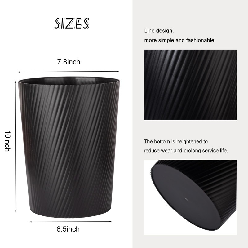 • 【Specification】 Dimensions Measure: 7.8-Inches x 6.5-Inches x 10-Inches Tall and with a capacity of 1.8-Gallon, our wastebasket is suitable for your needs. Use it for small trash, recycling cans, paper waste and junk mail for the office, or cotton, cleansing pads, cotton swabs and more in the bathroom.