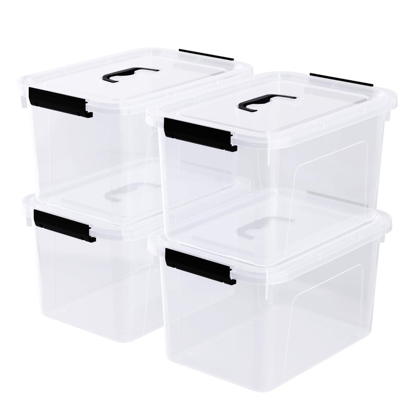 Uumitty 4 Pack 10.5 Quart Clear Storage Box, Plastic Storage Bins with Lids, Stackable Latching Box with Handle, Durable Storage Containers for Organizing