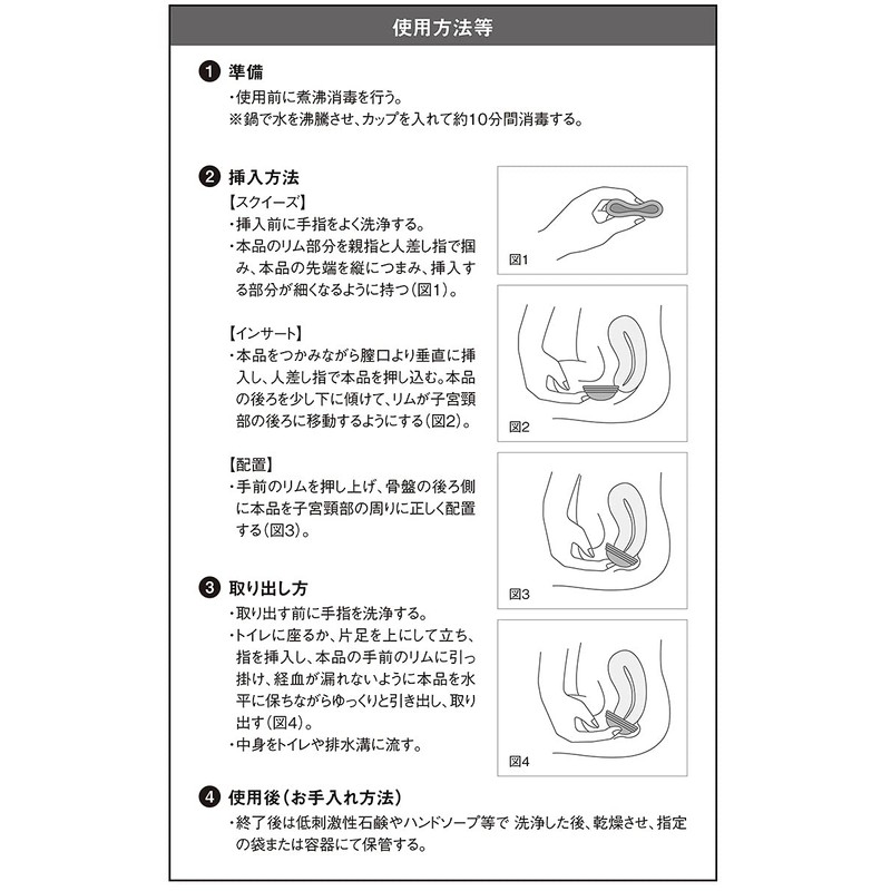月経時の経血を回収するために膣へ挿入し経血をキャッチする生理用品です。