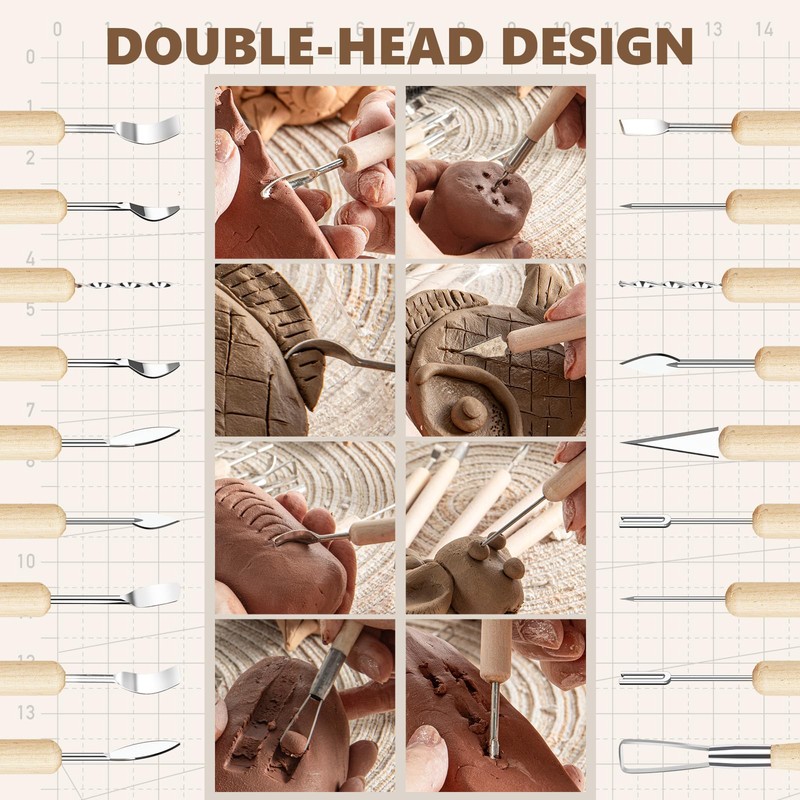 - WHAT YOU GET: Enhance your pottery skills with the comprehensive 11-piece pottery tool set. This carefully selected collection now includes an additional tool, making it a total of 11 essential tools for your pottery journey. You'll receive 11 pieces double-headed clay sculpting tools to enrich your pottery experience. These pottery tools are designed to help you transform clay into exquisite ceramic art, providing everything you need to breathe life into your pottery creations.