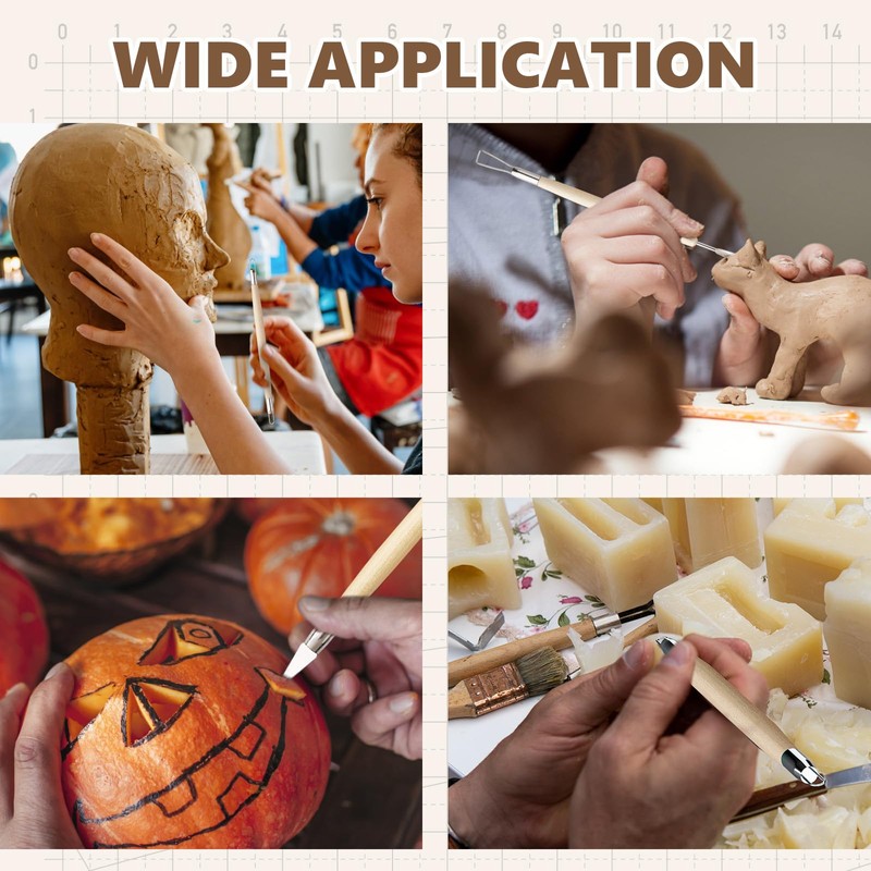 - PERFECT FOR BEGINNERS & PROS: Clay art modeling is a delightful art form that involves sculpting and molding modeling clay into various shapes and objects. While pottery can be crafted by hand, the addition of polymer clay tools in this set helps achieve a sleeker finish. This versatile clay modeling tools set is suitable for potters, sculptors, beginners, and experienced artists alike. Our ceramics tool set is also excellent for decorating and carving pumpkins on Halloweens.