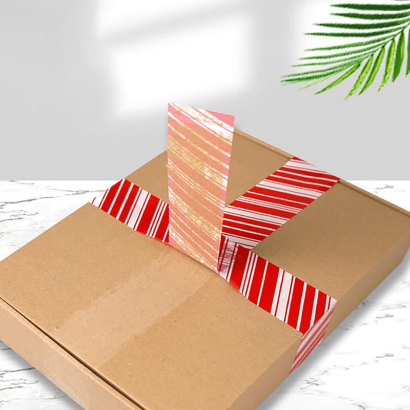 - The packing tape colored in vibrant red and white, printed with striped pattern, classic and festive, perfect for Christmas packing decorations