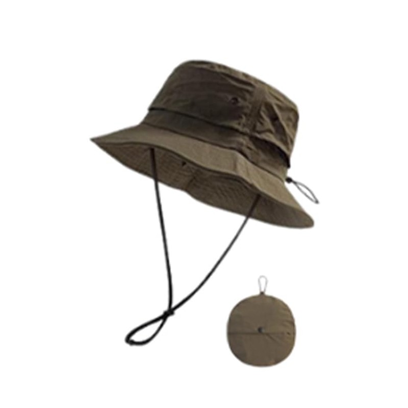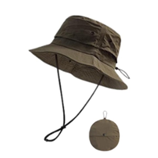 [uricca\ウリッカ] カーキ(メッシュ) 帽子 レディース uvカット バケットハット サファリ メンズ 折りたたみ コンパクト 収納 撥水 アウトドア フェス メッシュ 2タイプ サイズ調整 ひも付き 日焼け防止 紫外線対策 つば広 日よけ 軽量[郵1.5]^bm1480^