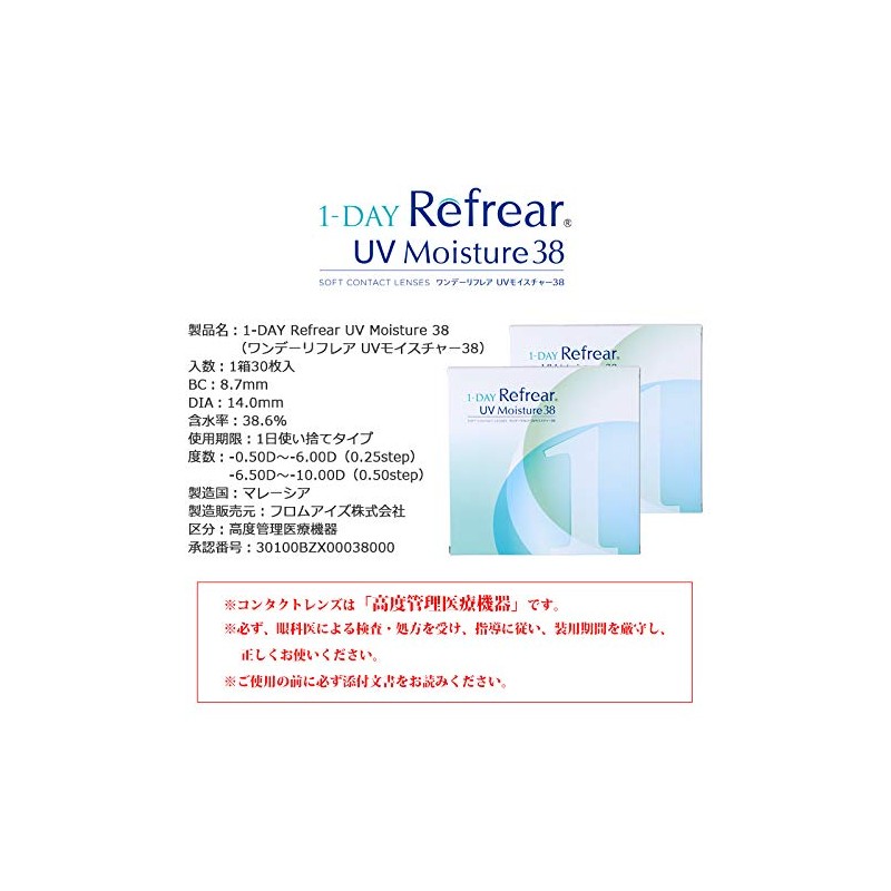 ワンデーリフレアUVモイスチャー38 1日使い捨て コンタクトレンズ 1箱30枚(PWR -4.25)