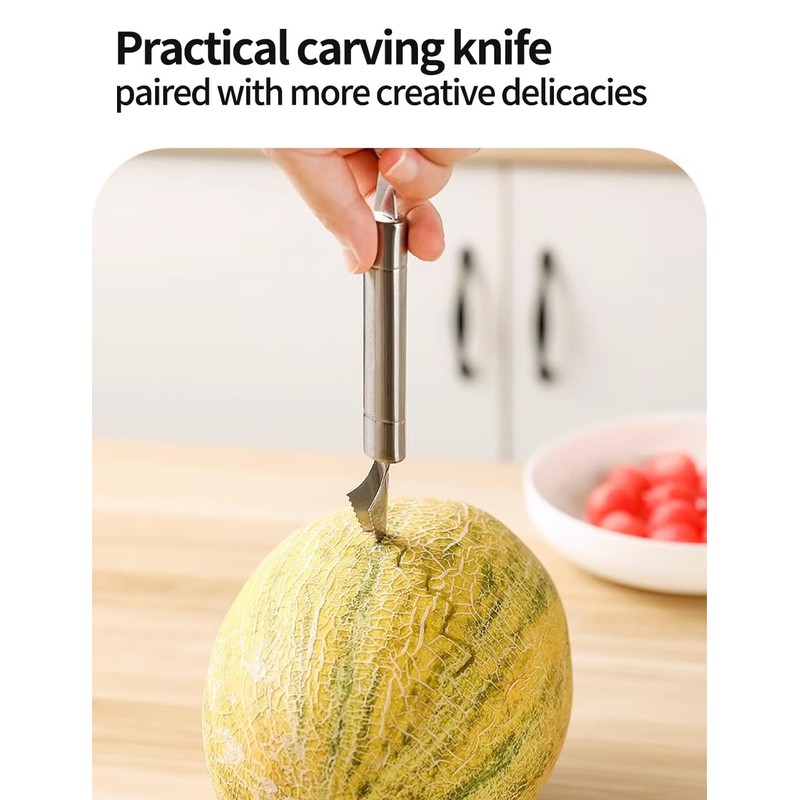 - Dual purpose design: Create a perfect fruit ball with one end large and the other end small. The fruit carving knife spoon is used to dig the ball on one end and carve on the other end. Suitable for watermelon, cantaloupe, cantaloupe, pear, papaya, potatoes, ice cream, cheese, etc. The serrated carving knife design has a sharp and sturdy cutting edge, making cutting convenient and effortless, and the incision is neat and beautiful.
