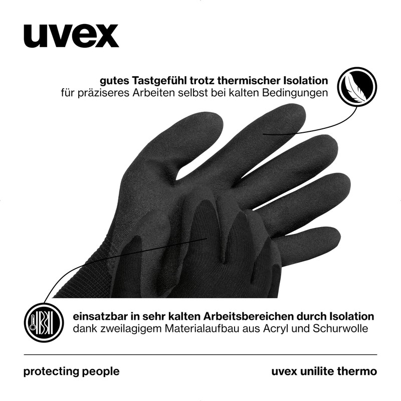 - Robust coating: the Uvex unilite thermo remains warm and flexible even in great cold, ideal for demanding working conditions.