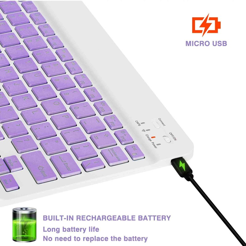 - ECO-FRIENDLY TECHNOLOGY & RECHARGEABLE BATTERIES — The Bluetooth keyboard has a remarkably long-lasting rechargeable battery inside that allows for up to 90 hours of nonstop typing on a single charge. It has an energy-saving mode for environmental conservation that puts the keyboard to sleep after 30 minutes of inactivity to reduce wasteful energy use.