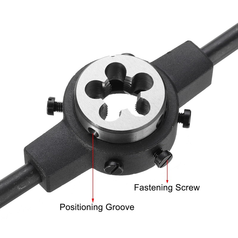 - Special Design: High-speed steel machine tap is with high hardness and toughness for wear resistance. Features just the base substrate without any additional coatings. With adjustable screws, the die stock can securely hold round dies, and the plastic handle design, is comfortable to hold, non-slip and labor-saving.