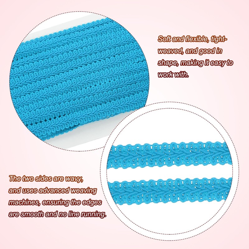 - Design: This braided trim style is elegant and beautiful, uses the polyester rope twisted in the shape of a scolopendra, the back is in the shape of an S, the two sides are wavy, and uses advanced weaving machines, ensuring the edges are smooth and no line running.