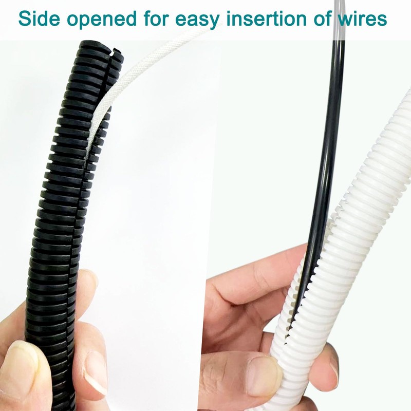 - Easy Installation - Wire sleeving makes wire and cabling easier to manage. The split wire loom has a split opening that allows for easy insertion or separation of cables. Corrugated webbing tubing can be cut to any length for easy custom installation.