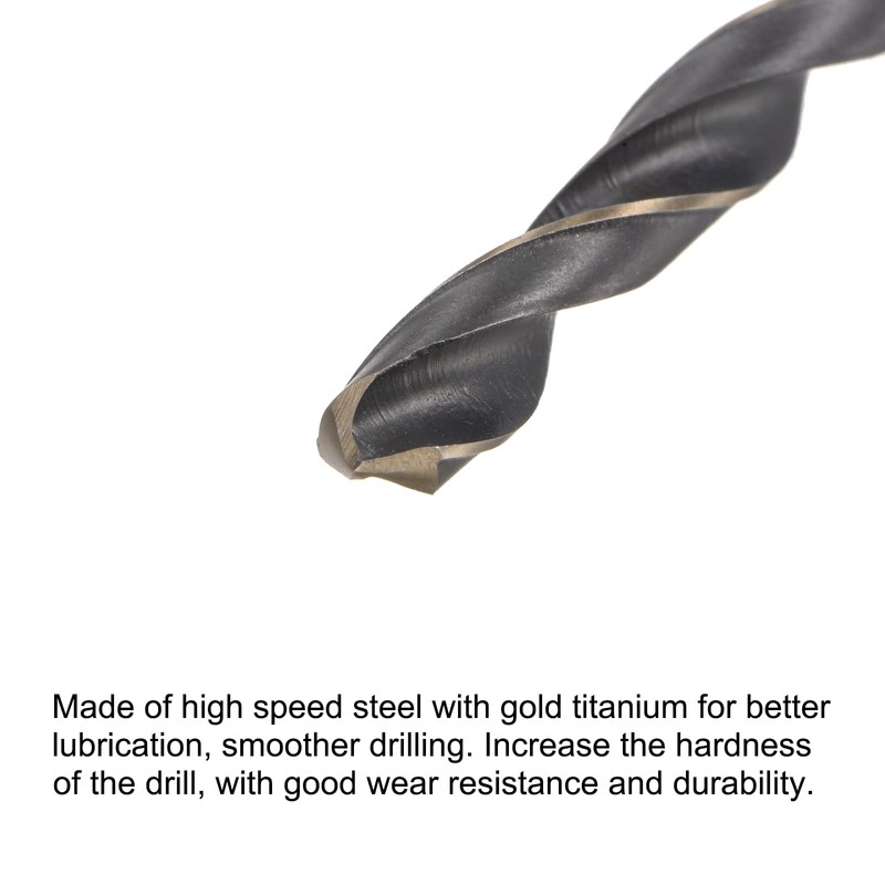 - Material: Made of high speed steel with dual coating of gold titanium and black nitride for better lubrication, smoother drilling. Increase the hardness of the drill, with good wear resistance and durability.