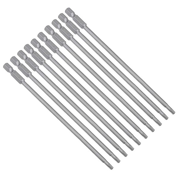 uxcell 10 Pcs T15 Magnetic Torx Screwdriver Bits, 1/4 Inch Hex Shank 5.9-inch Length S2 Security Tamper Proof Screw Driver Kit Tools