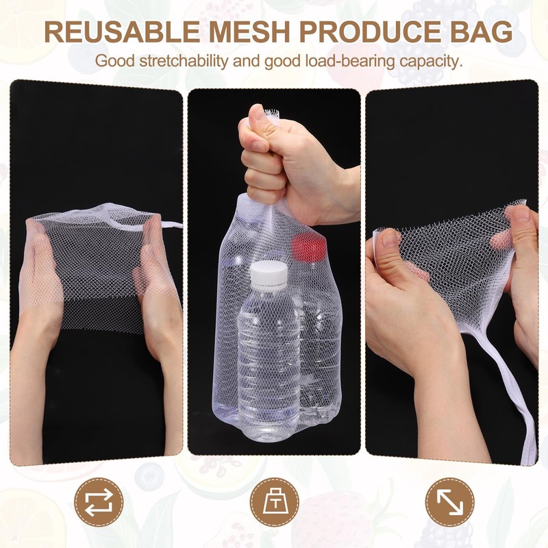 Mesh Design - The mesh design is breathable and can be used with a closure for easy tying and carrying. The mesh bag is made of sturdy material, which is stronger, more supportive, not easy to break, and can be reused. Easy to clean, can be hand-washed or machine-washed.