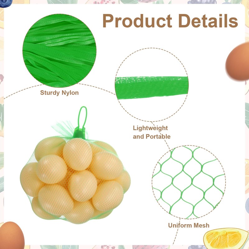 uxcell 100Pcs Reusable Produce Mesh Bags, 40cm Mesh Nylon Netting with Loop-Style Closures, Stretchable Egg Hatching Bags for Fruit Vegetable Storage, Green