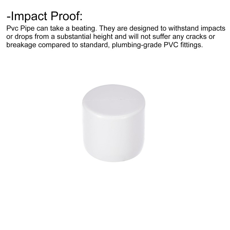 -Impact Proof: Pipe end cap plug can take a beating. They are designed to withstand impacts, or drops from a substantial height and will not suffer any cracks or breakage compared to standard, plumbing-grade PVC fittings.
