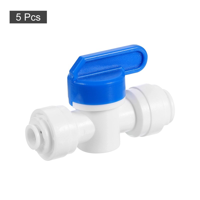 uxcell 10Pcs Push to Connect Fittings, 1/4" OD x 3/8" OD Air Hose Fittings Tube&Hose&Pipe Quick Connect Fitting Plastic Ball Valve with Handles for RO Water System, White+Blue (6-10mm)