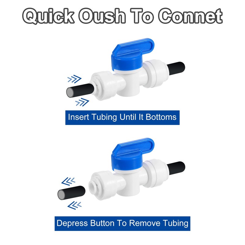Durable Material: These push-in connection fittings are made of plastic, with good sealing, corrosion resistance, and durability, providing long-lasting performance for pipes, RO water systems, and reverse osmosis water systems.