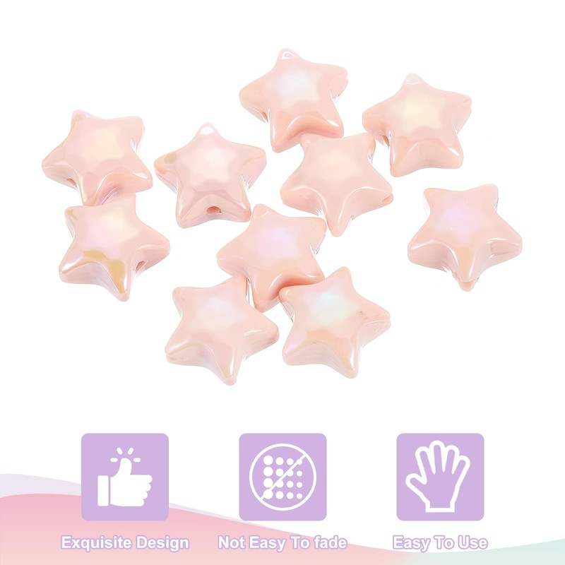 uxcell 10Pcs Star Shaped Beads, 12x19mm Lovely Acrylic Star Bulk Beads for Bracelet Earring Necklace Craft Making (Light Pink)