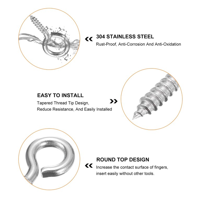 Material - The self-tapping eye ring bolt with 304 Stainless Steel, is anti-corrosion and anti-oxidation, rust-proof, not easy to deform or fade, and has long-lasting durability.