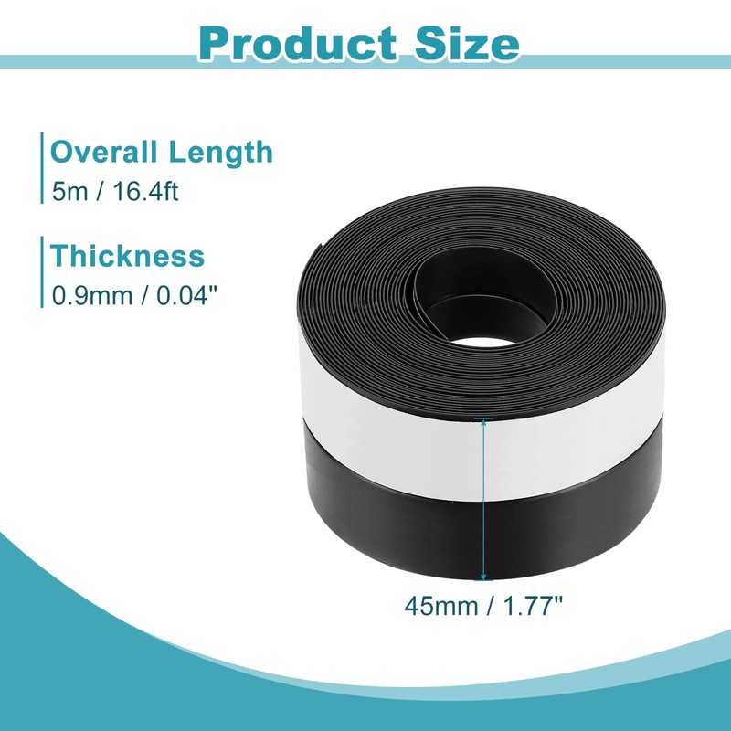 - [Package and Size]: Overall Length: 5m / 16.4ft; Width: 45mm / 1.77inch; Thickness: 0.9mm / 0.04inch; Package Content: 1Pcs x Weather Stripping