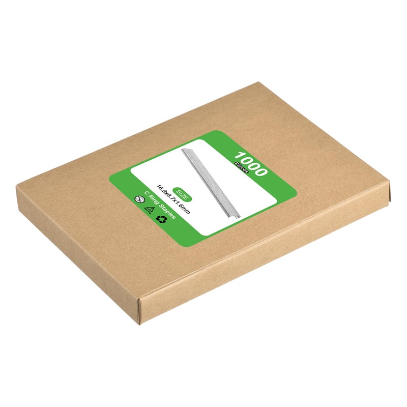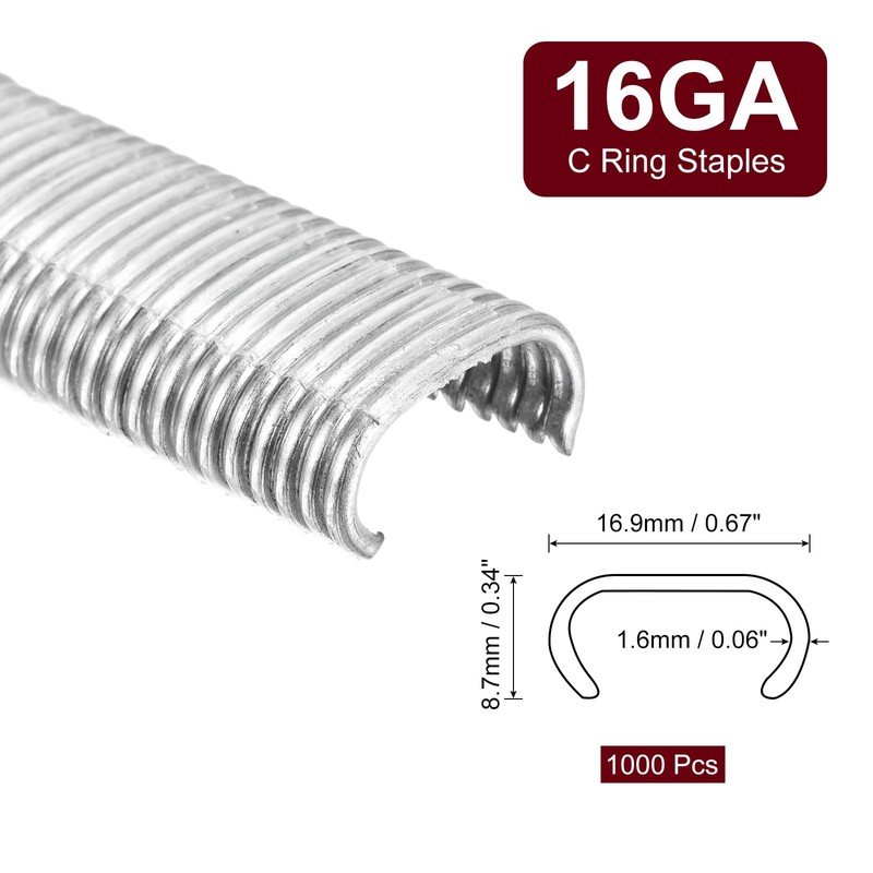 - Specification: C Ring Staples; Outside Crown: 16.9mm/ 0.67inch; Height: 8.7mm/0.34inch; Surface Finish: Electro Galvanized; Package Includes 1000 Pcs x C Ring Staples