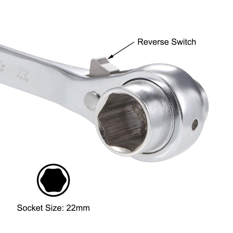uxcell 19 x 22mm Hexagon Scaffold Podger Ratchet Spanner Ratcheting Socket Wrench Tool (Silver Tone)
