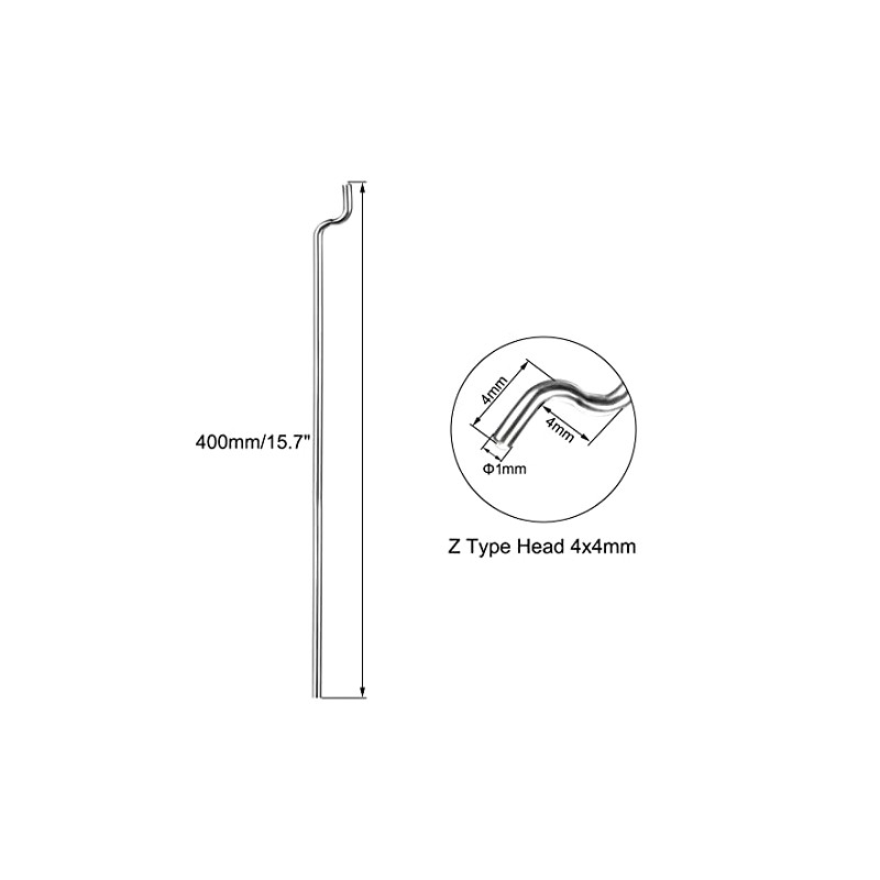 - [PARAMETER] - Material: 304 stainless steel; Diameter 1mm, Length 15.7inch/400mm, Z Type Head 4x4mm, fit for 1mm and above hole diameter quick adjuster.