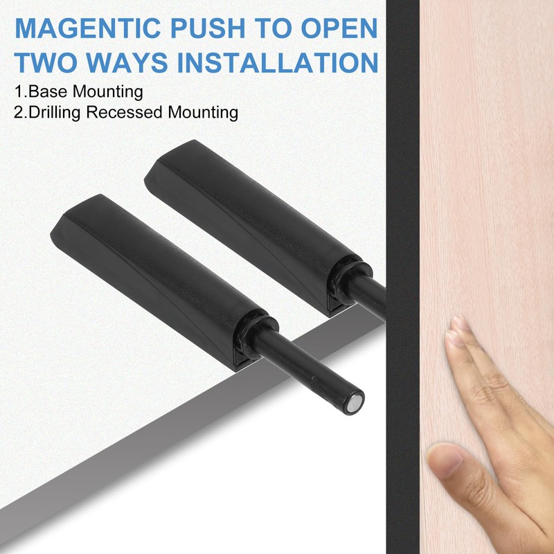 Secure Closure: Our push to open system features a long-stroke design with a built-in magnet that ensures a secure close point, preventing "drifting open" doors. You can rotate the magnetic tip of the inner core left or right to adjust its extra extension length of 2-9 mm to fit the gap of the door.